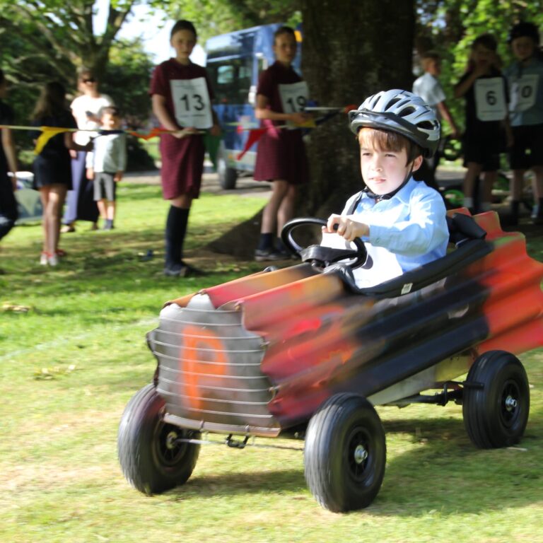 Pupils have immense fun at the first ever Mount Kelly Soap Box Derby.