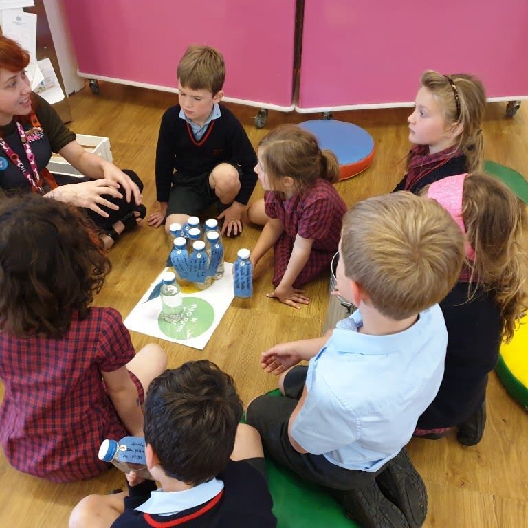 Pre-Prep pupils are treated to an interactive presentation on Climate Change by Year 7 pupils