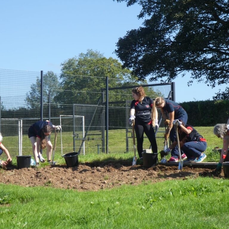 Year 9 Duke of Edinburgh volunteers design and create wildflower beds at Buckland Abbey.