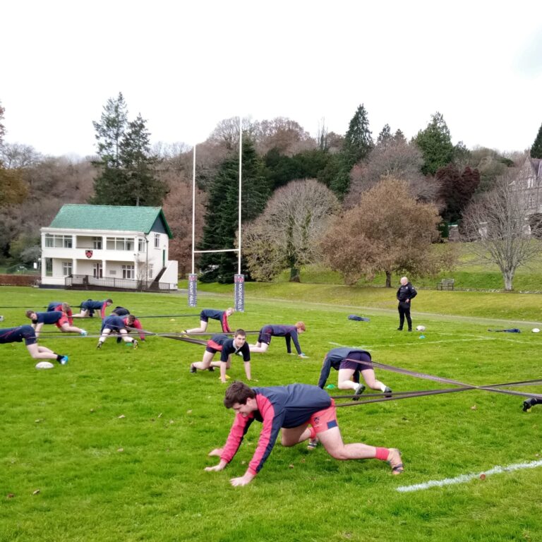 Mount Kelly's 1st and 2nd XV forwards enjoy a scrum masterclass with Exeter Chiefs' coach Keith Brooking